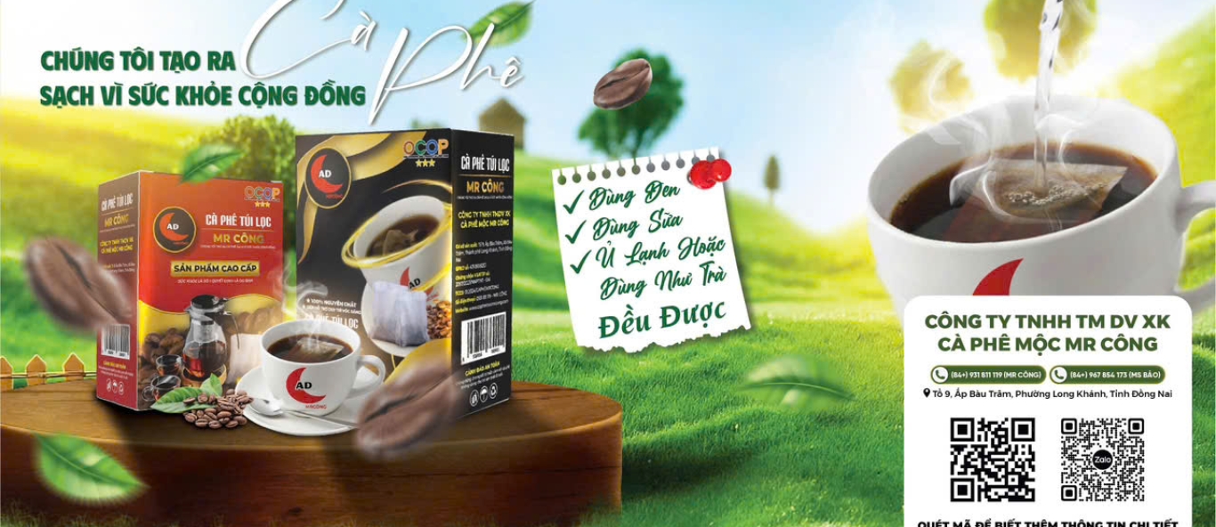 Cà phê mộc Mr Công Chuyên phân phối sỉ & lẻ cà phê túi lọc, cà phê bột , cà phê hạt nguyên chất. Cafe Mộc Mr. Công cam kết cung cấp cafe 100% tinh khiết với phương châm “4 Không”: 1. Không độn bắp, đậu, cau 2. Không tẩm hương liệu, phẩm màu 3. Không sử dụng phụ gia, chất bảo quản 4. Không gây độc hại cho sức khỏe. Mr. Công sẽ đem đến cho người tiêu dùng cảm giác yên tâm vì đang sử dụng sản phẩm sạch để người tiêu dùng an tâm khi chọn gắn bó với cafe Mộc Mr. Công trong thói quen thưởng thức cafe của mình.